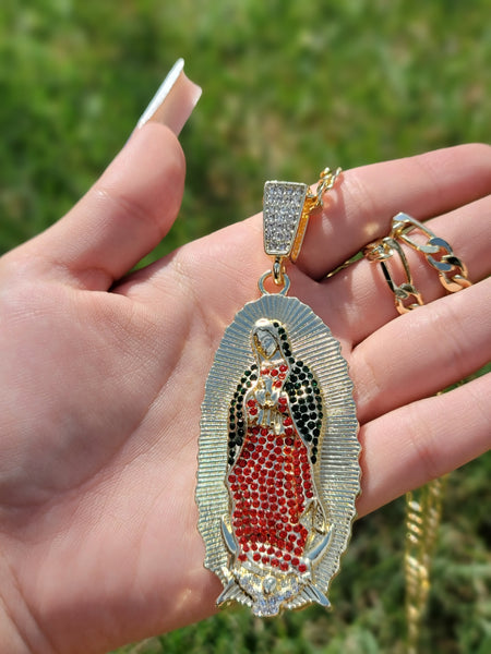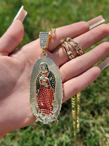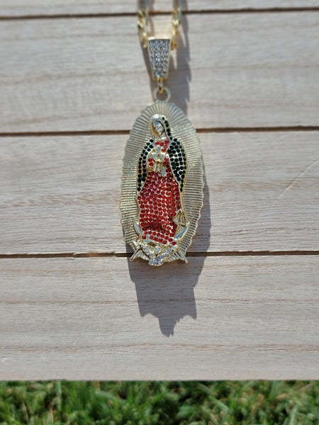 Beautiful Virgen de Guadalupe red pendant